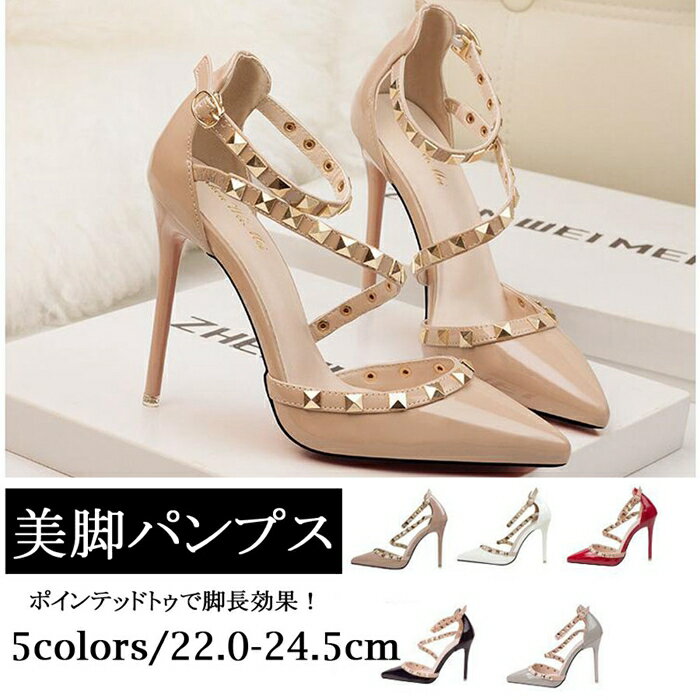 パンプス 痛くない ハイヒール ピンヒール 通勤用 エナメル パンプス リベット ハイヒール ポインテッドトゥ ヒール10cm エナメル パンプス ピンヒール 美脚パンプス 定番 フォーマル 結婚式 オフィス 大きいサイズ24.5cm 5色 短納期